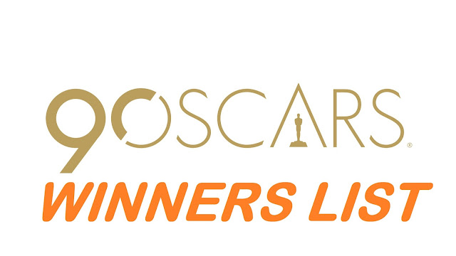 Here is the complete list of winners in the 90th Academy Awards (as announced) held at the Dolby Theater in Los Angeles, California: